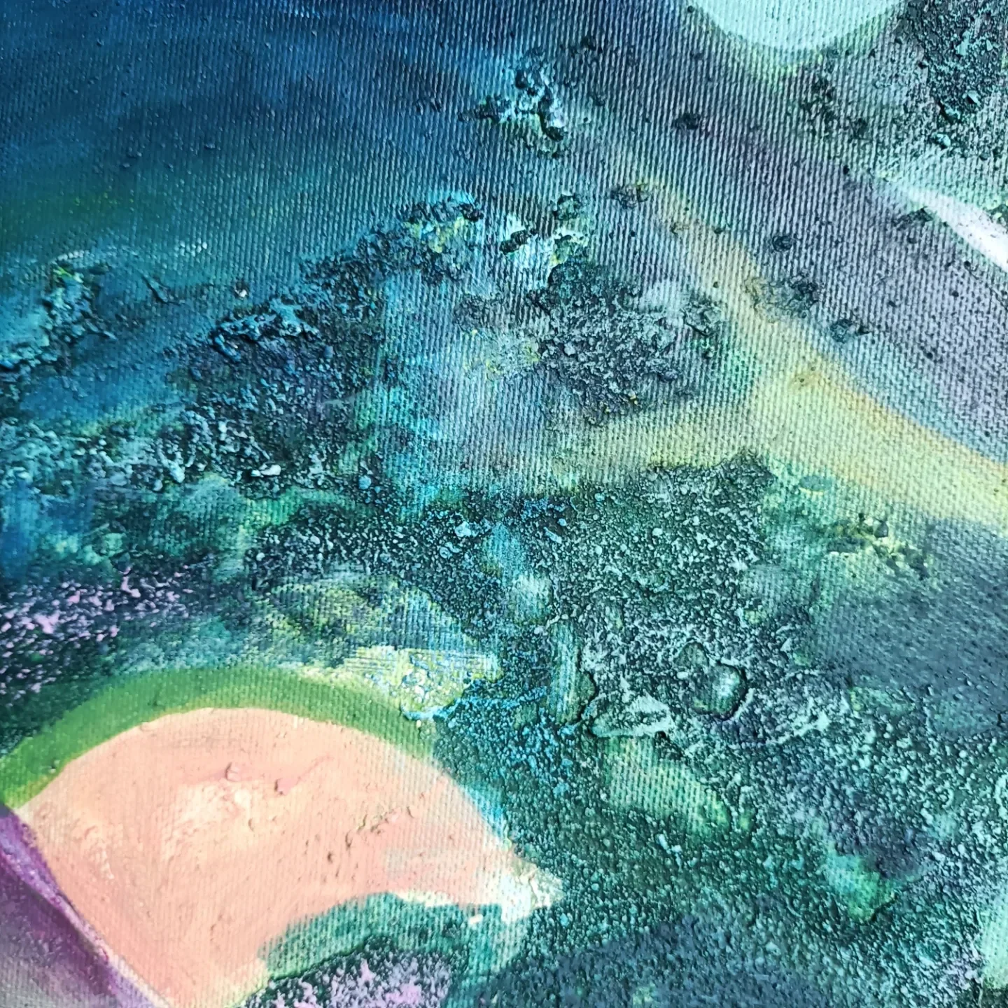 Laat u meevoeren naar de zomerse heuvels van Winterberg, een schilderachtig stadje in Duitsland, bekend om zijn uitgestrekte natuur en rustgevende landschappen. Dit abstracte kunstwerk vangt de sfeer van zonnige dagen in de bergen, waar frisse groentinten en diepe blauwen samensmelten in een dynamisch en gelaagd spel van kleur en vorm. De subtiele texturen en mixed media-technieken geven het werk een levendige uitstraling.